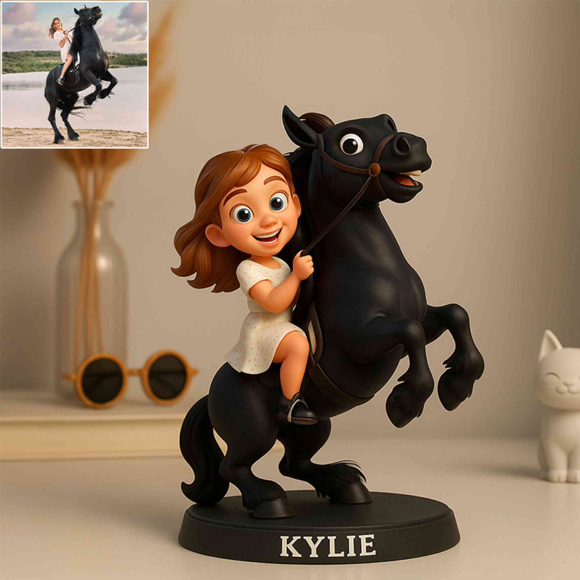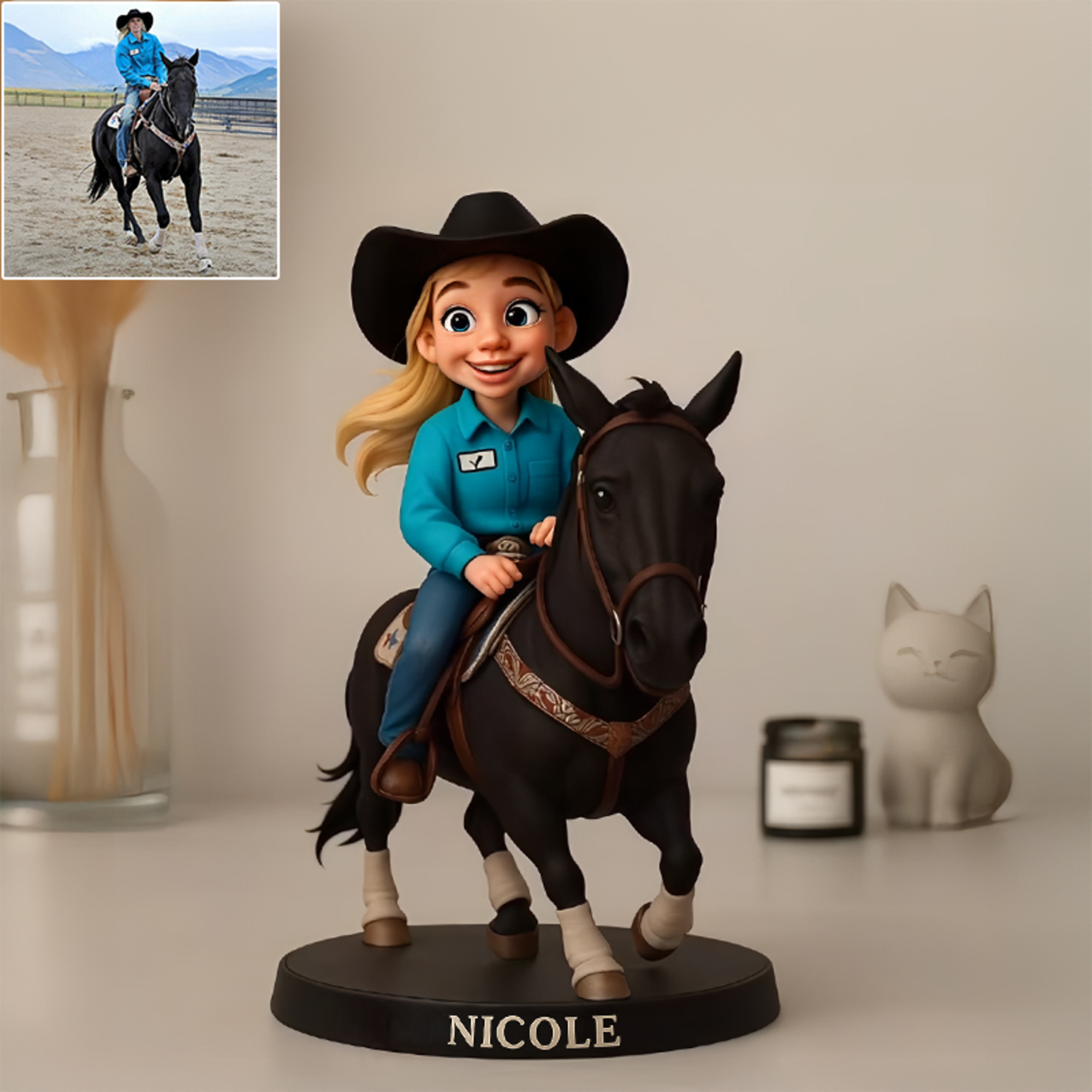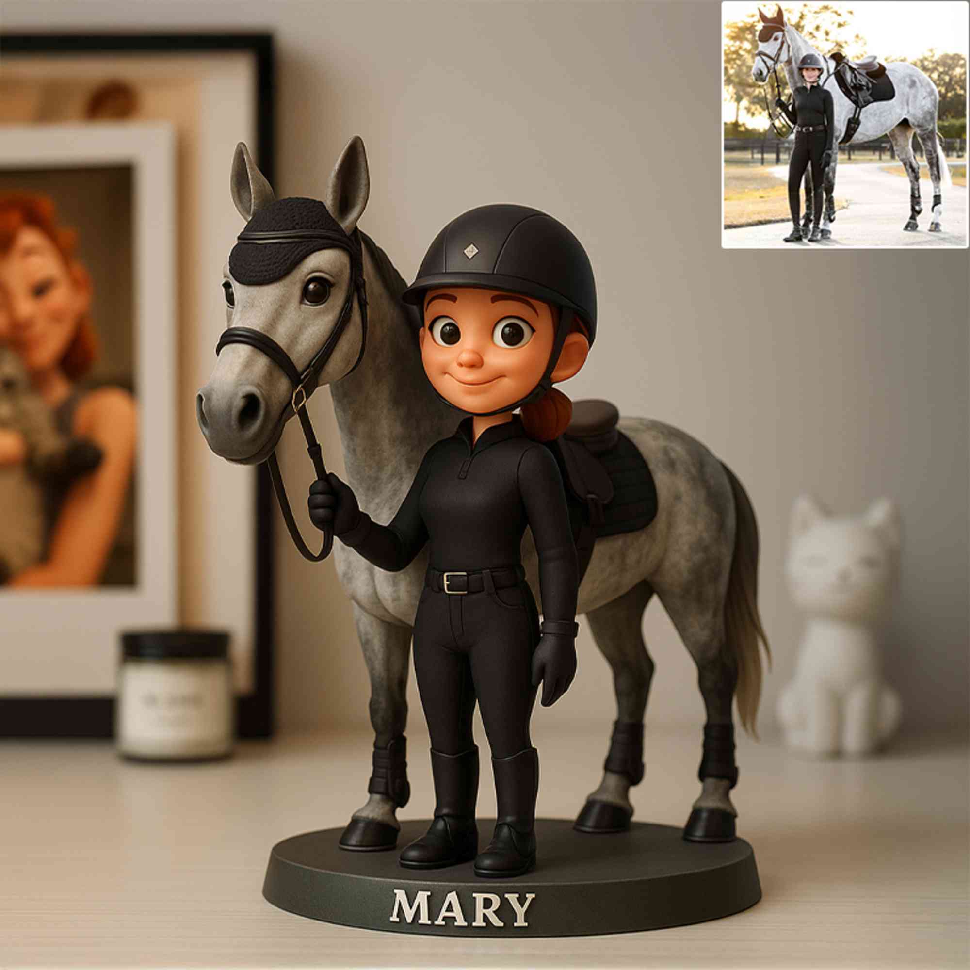Custom 3D Cartoon Style Horse Photo Desk Decor with Name, Realistic Acrylic Portrait for Office & Home Decor, Christmas Gift for Horse Lovers/Riders