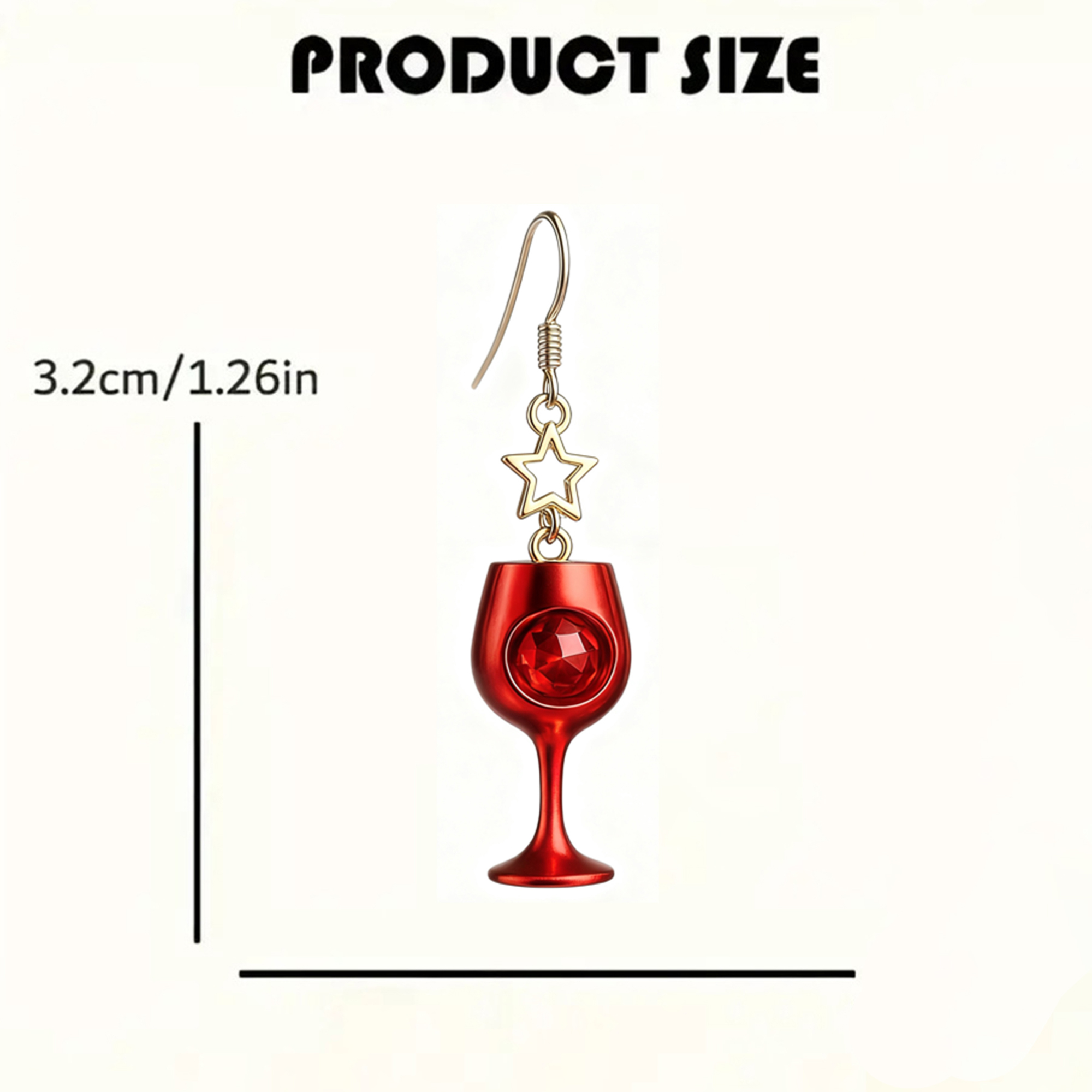 These 3D Y2K-style red wine glass earrings showcase the confidence and individuality of modern women with their unique retro party style and dazzling color. The realistic, three-dimensional outline of the red wine glass adds depth and dimension, creating a playful and eye-catching effect, like a miniature wine glass dangling from the ear. Paired with a shimmering gold star pendant, they exude a strong Y2K millennial trend. Made of lightweight acrylic, the earrings are not only comfortable and hypoallergenic but also possess a translucent quality, enhancing their overall three-dimensional luster.