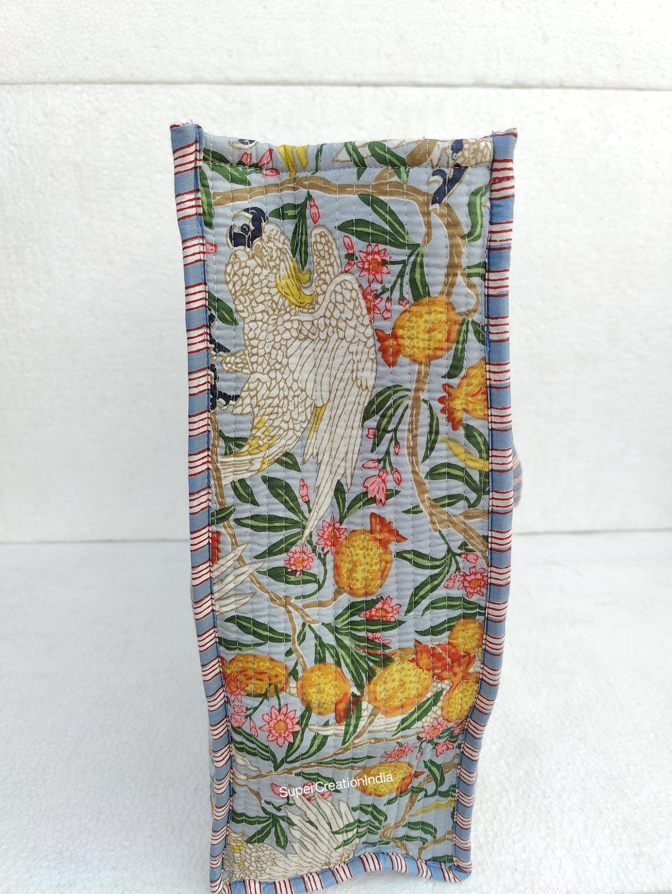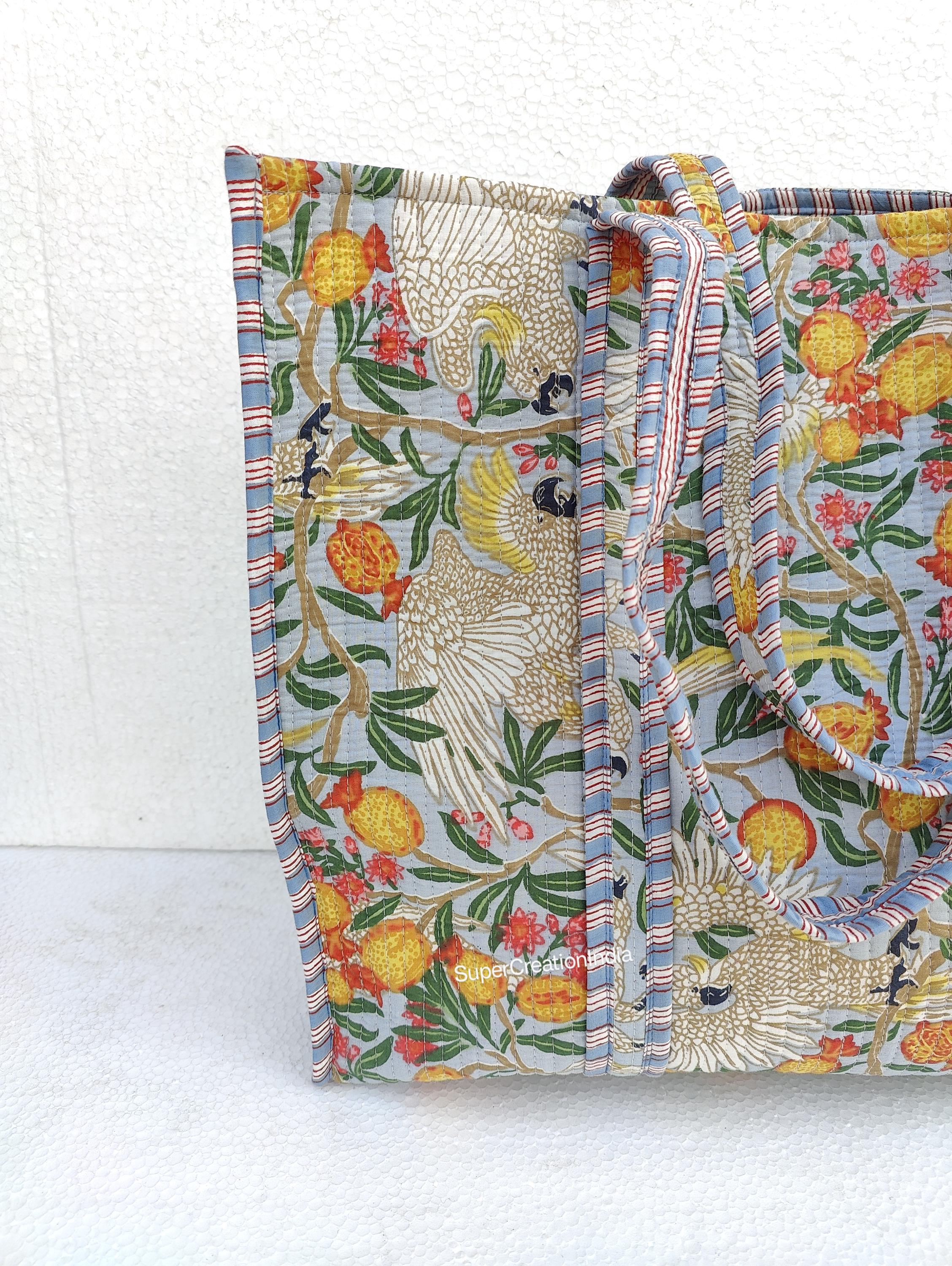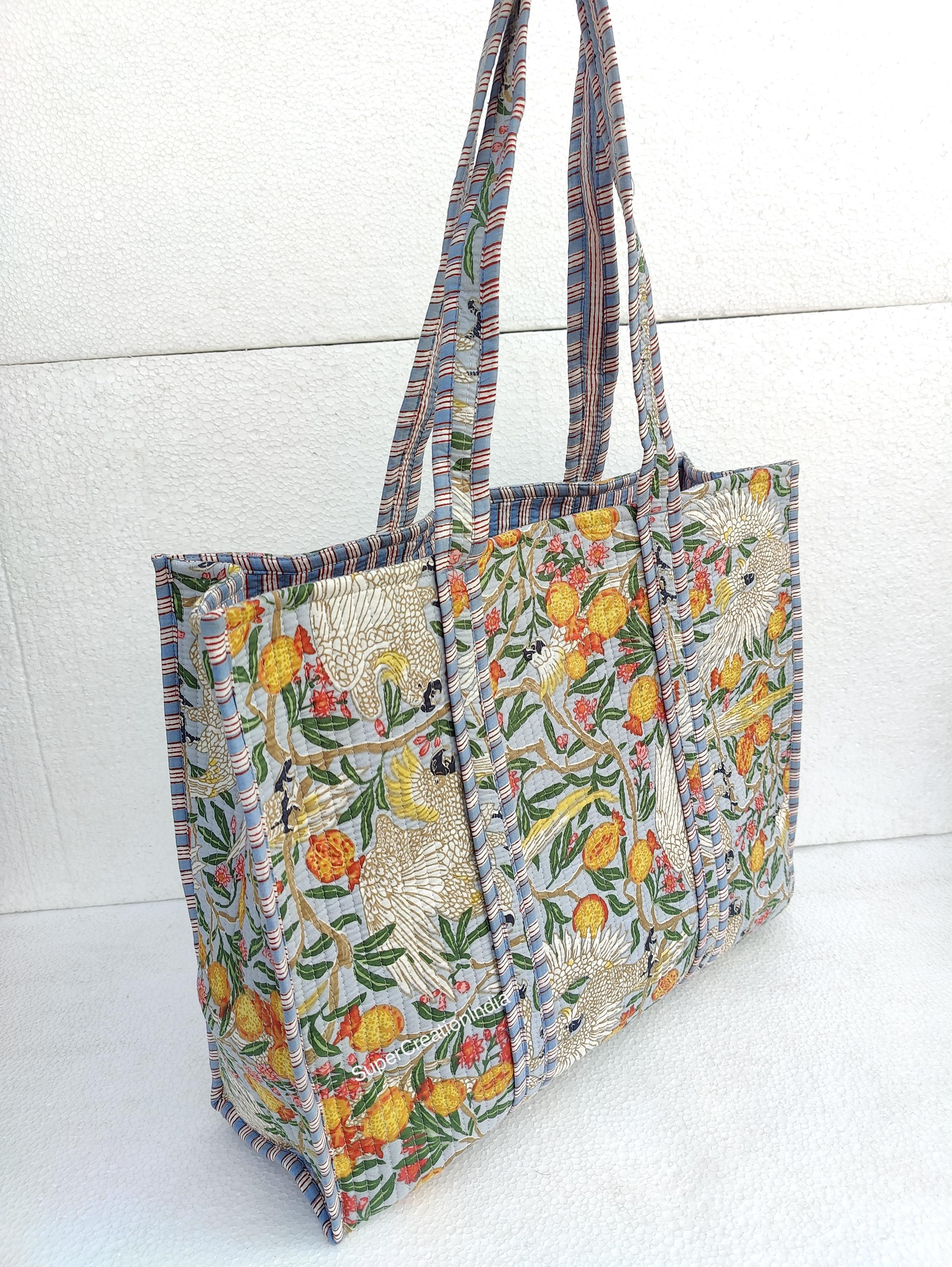 Gorgeous Prints of Hand Printed cotton are brought together to give an alternate to plastic bags usage .