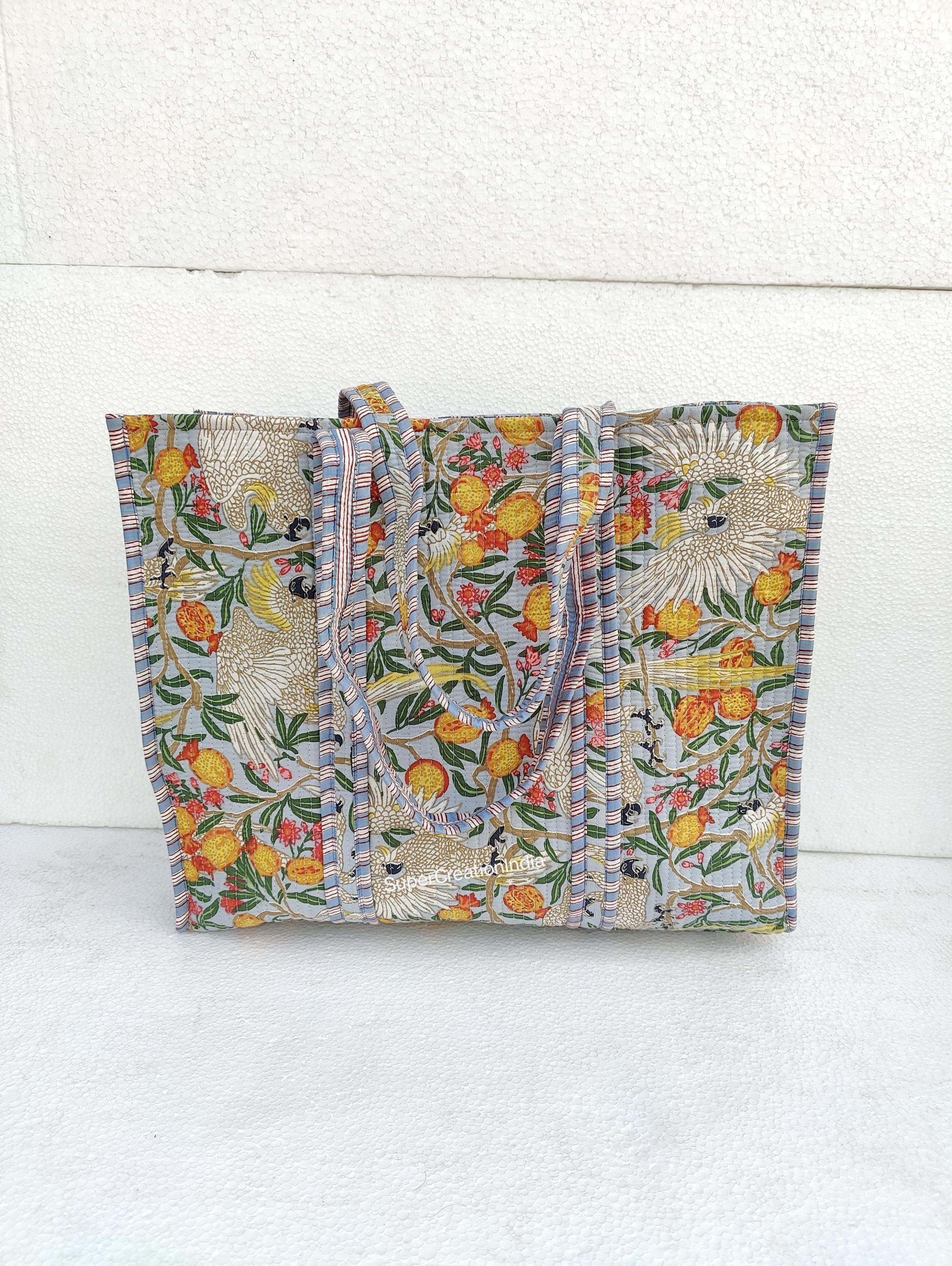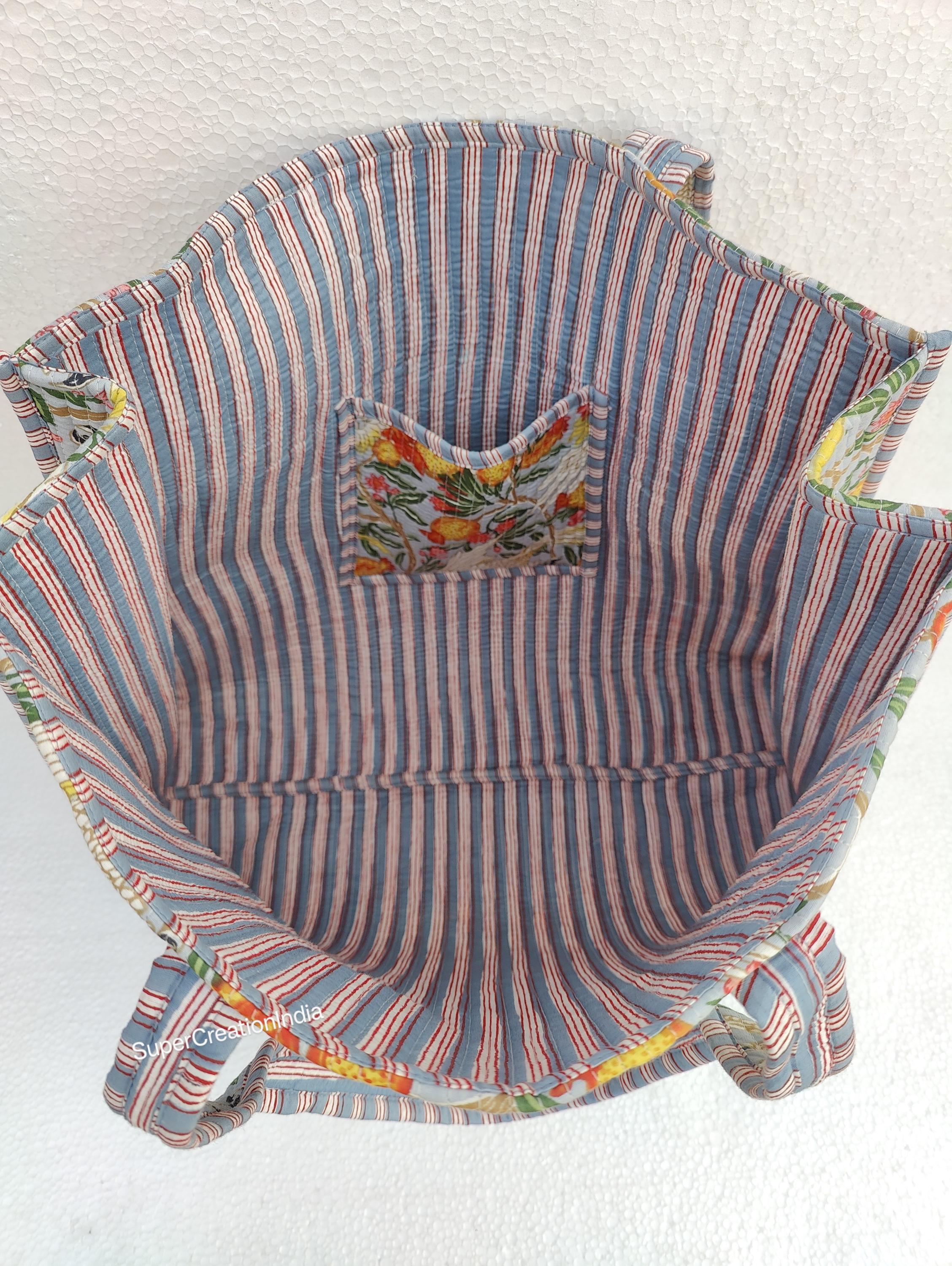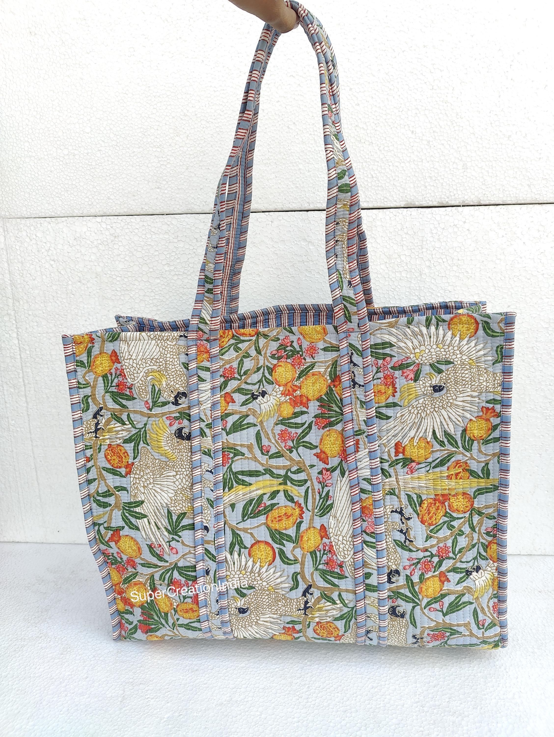 Gorgeous Prints of Hand Printed cotton are brought together to give an alternate to plastic bags usage .